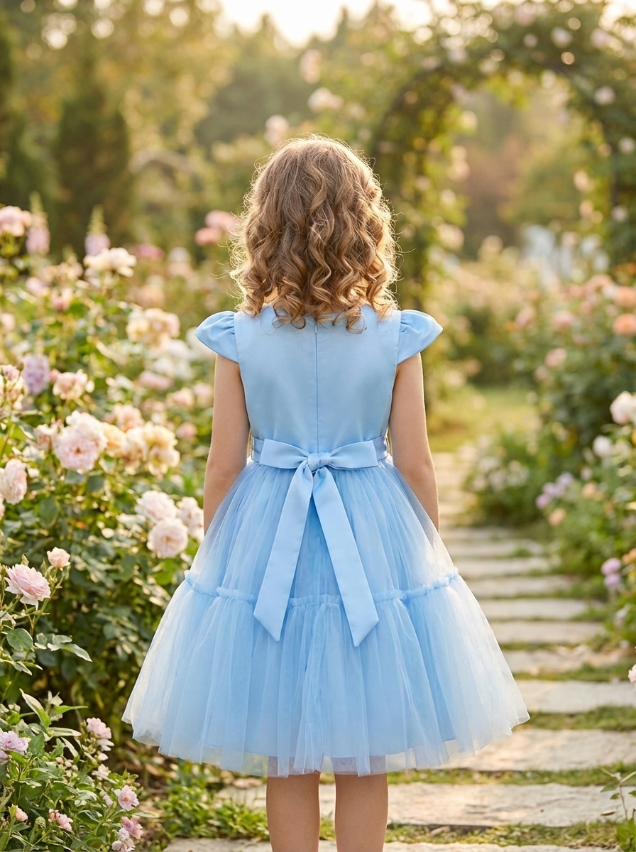 Girls Elegant Party Dress – Blue Embroidered Princess Dress For Special Occasions