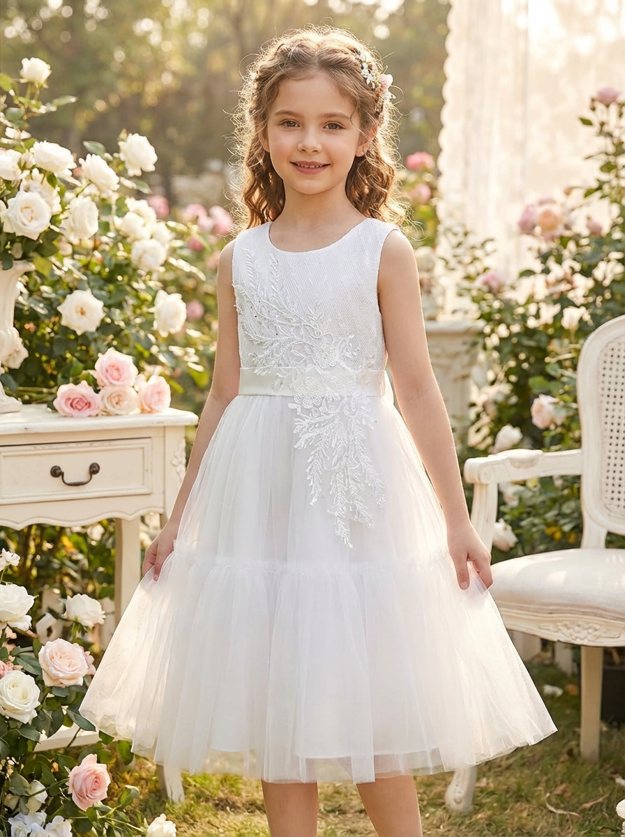 Girls Elegant Party Dress – White Embroidered Princess Dress For Special Occasions