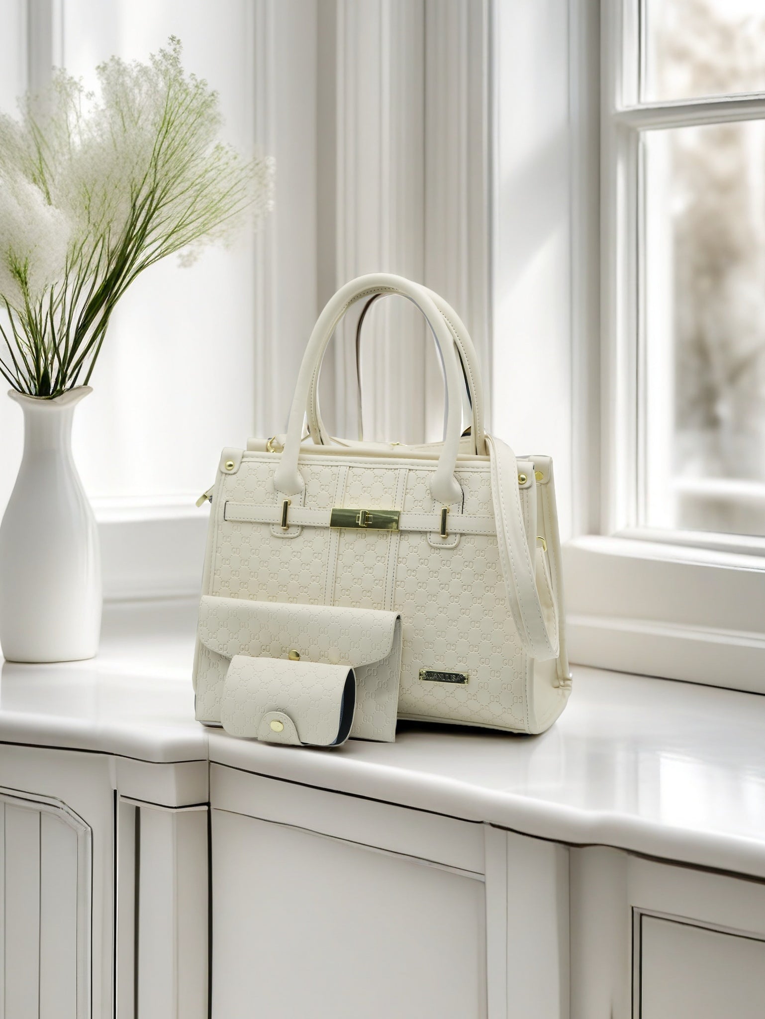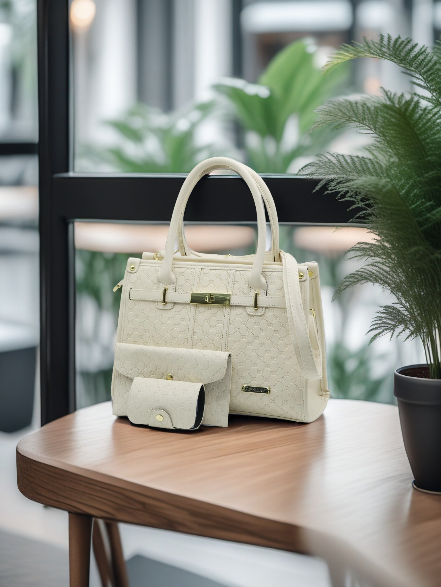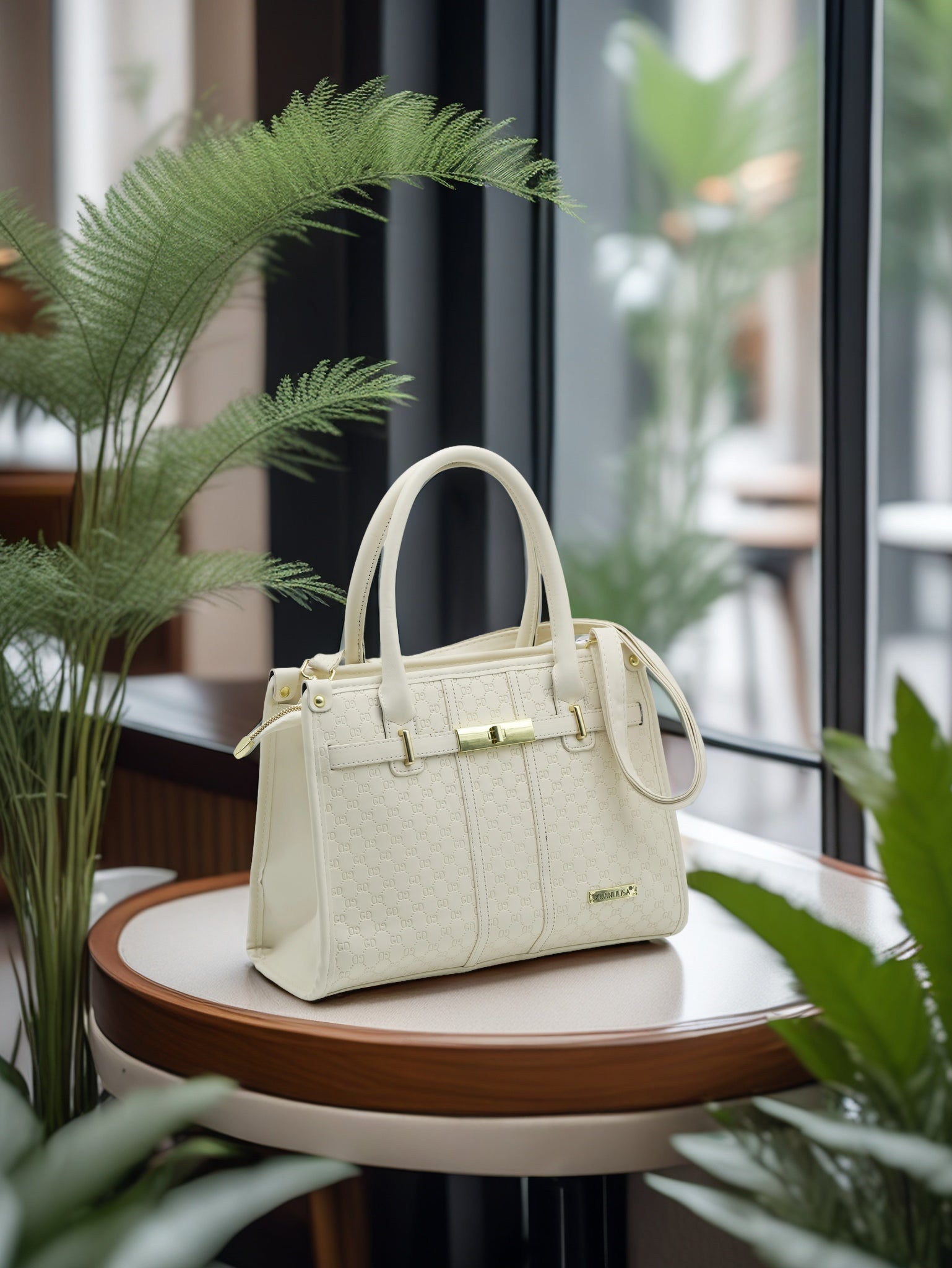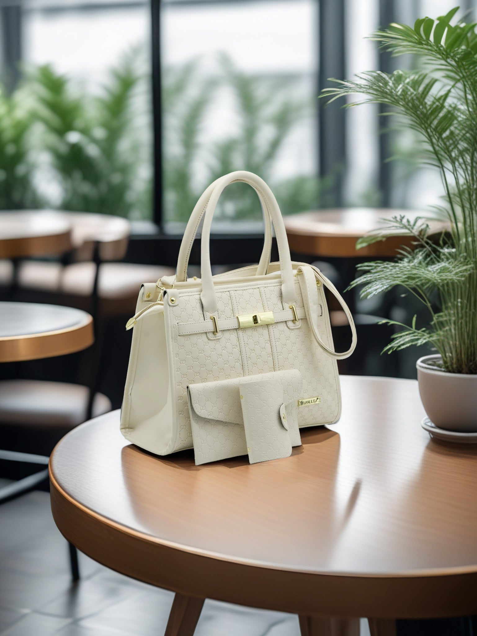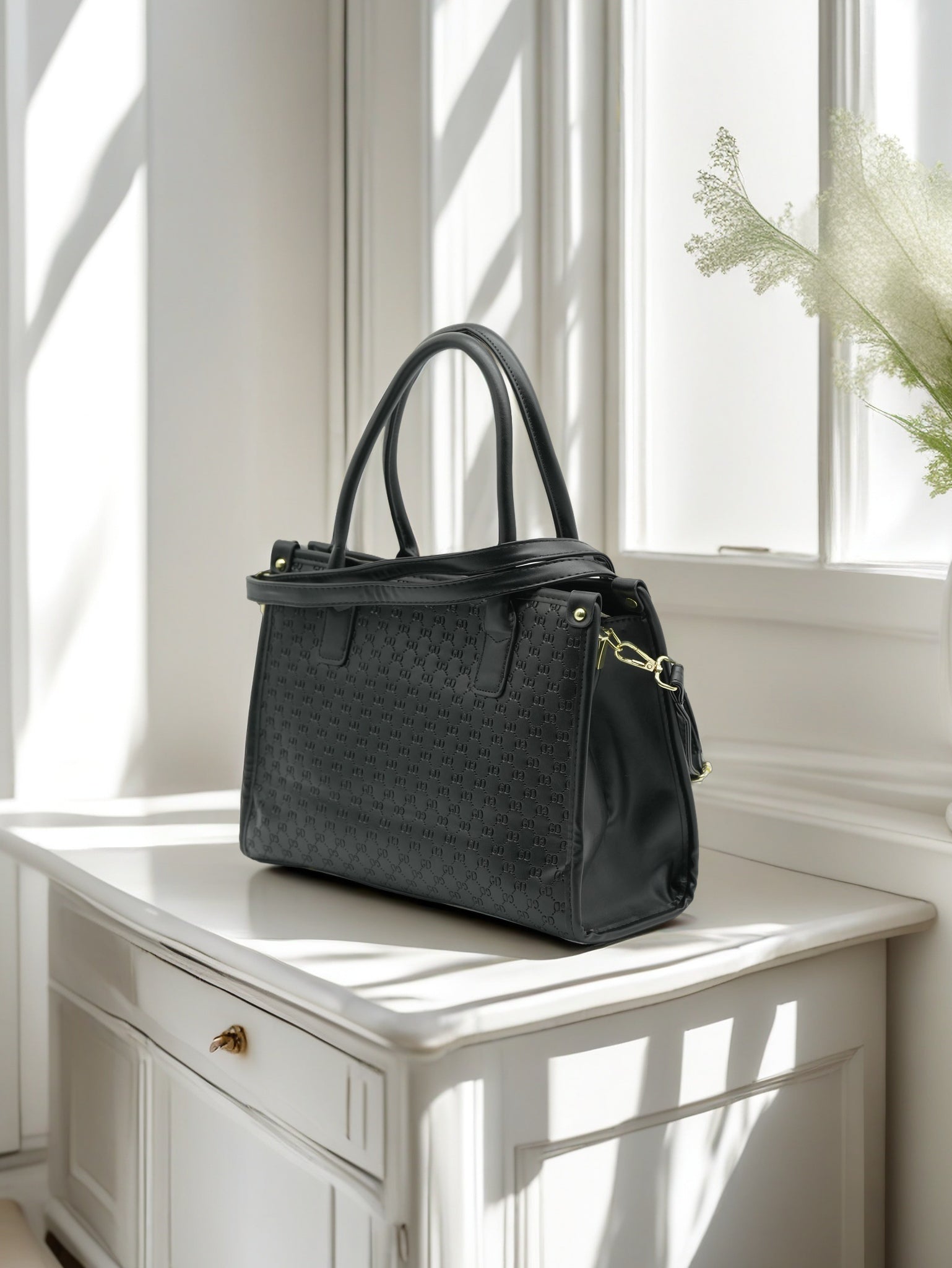 حقيبة يد نسائية بنية اللون مستوحاة من المصممين ومزينة بأحرف أولى مع قفل ذهبي ومقابض علوية