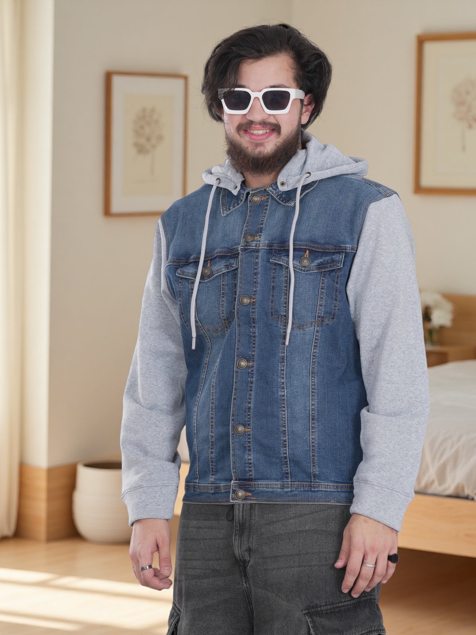 جاكيت جينز أزرق رجالي بغطاء للرأس
