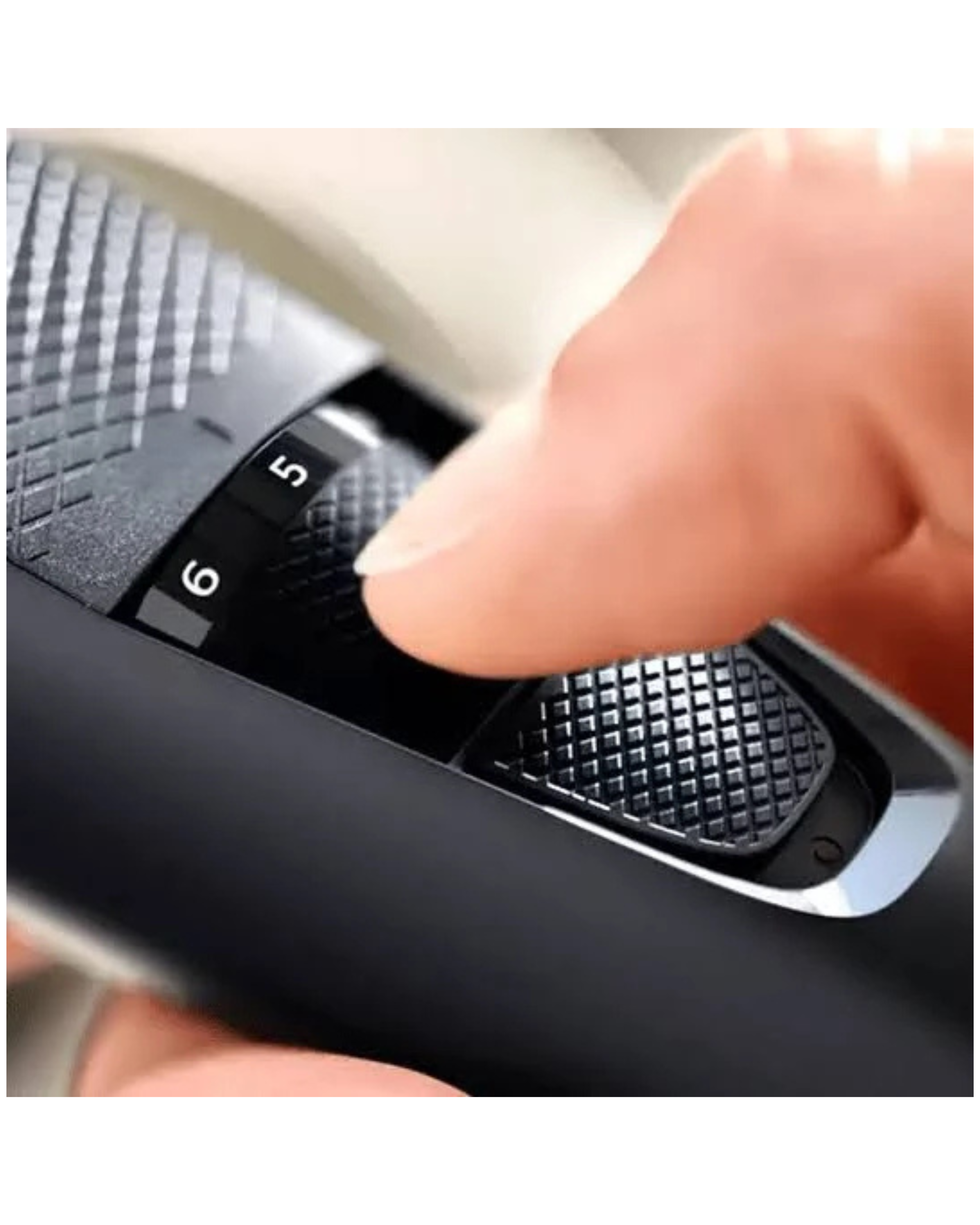 - يوجه مشط الرفع والتشذيب الشعر إلى الشفرات لقص متساوٍ