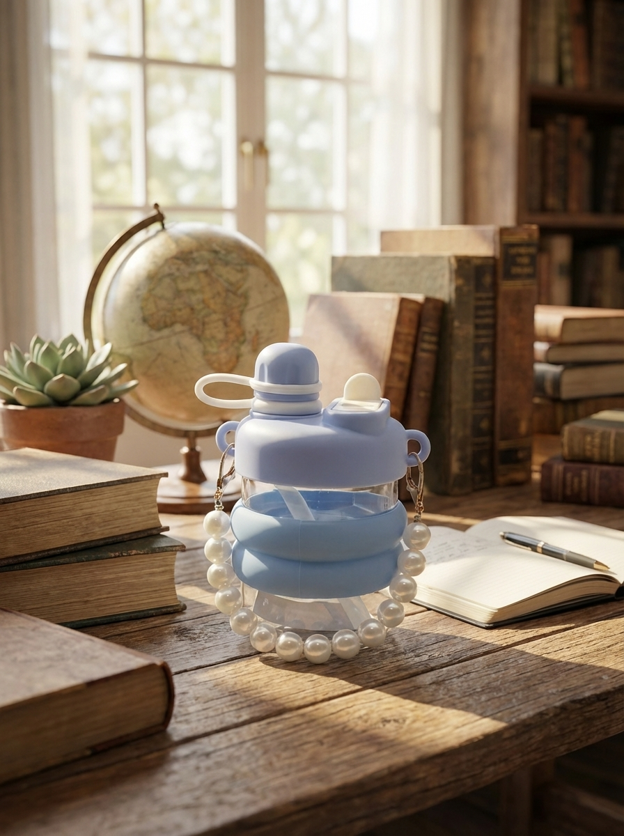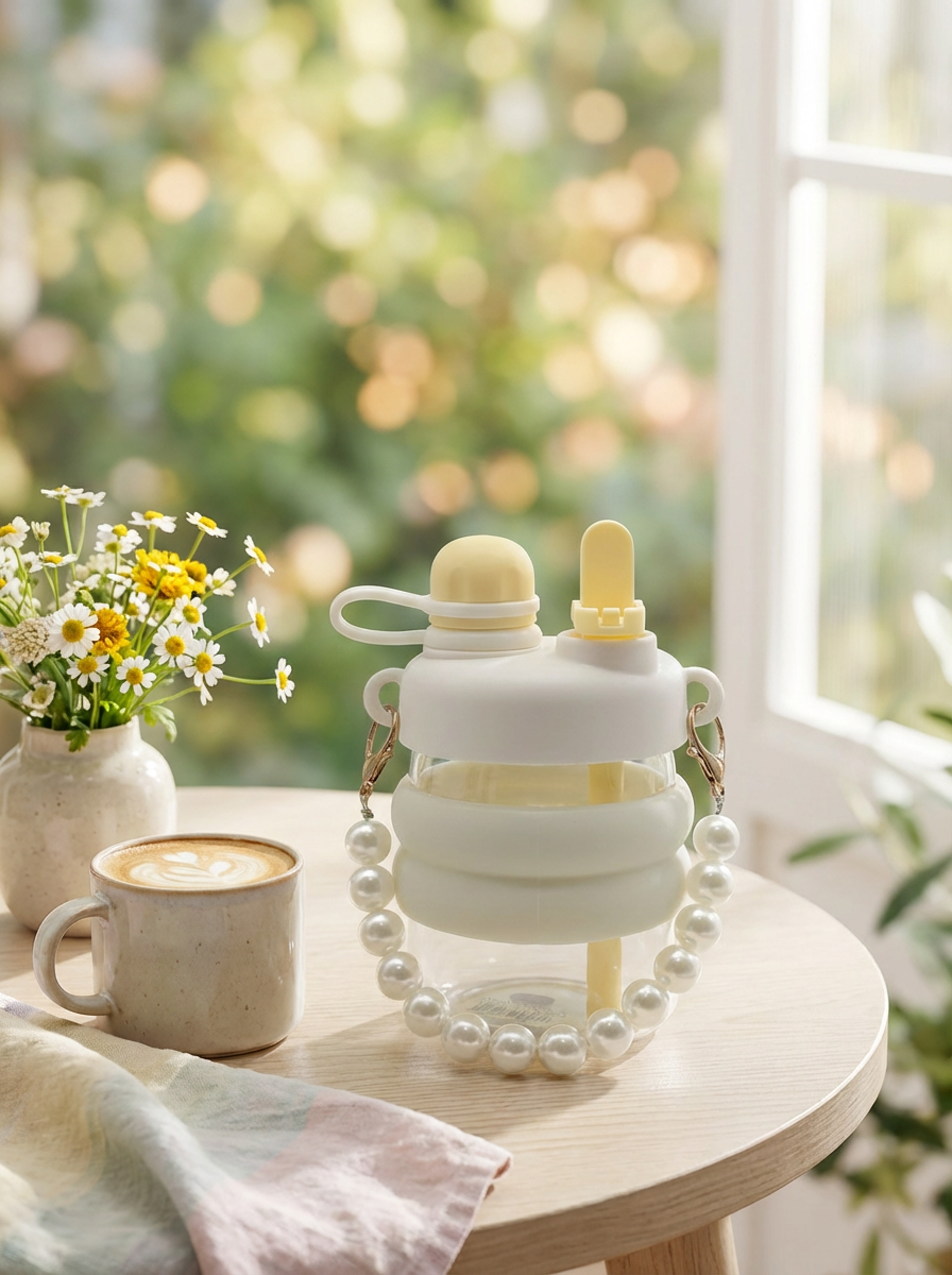 Make hydration fun and stylish with this adorable Pearl Handle Kids Water Bottle. Designed especially for little hands, this bottle combines functionality with a trendy aesthetic. The unique pearl strap adds a fashionable touch while making it easy for kids to carry anywhere—school, outings, or travel.