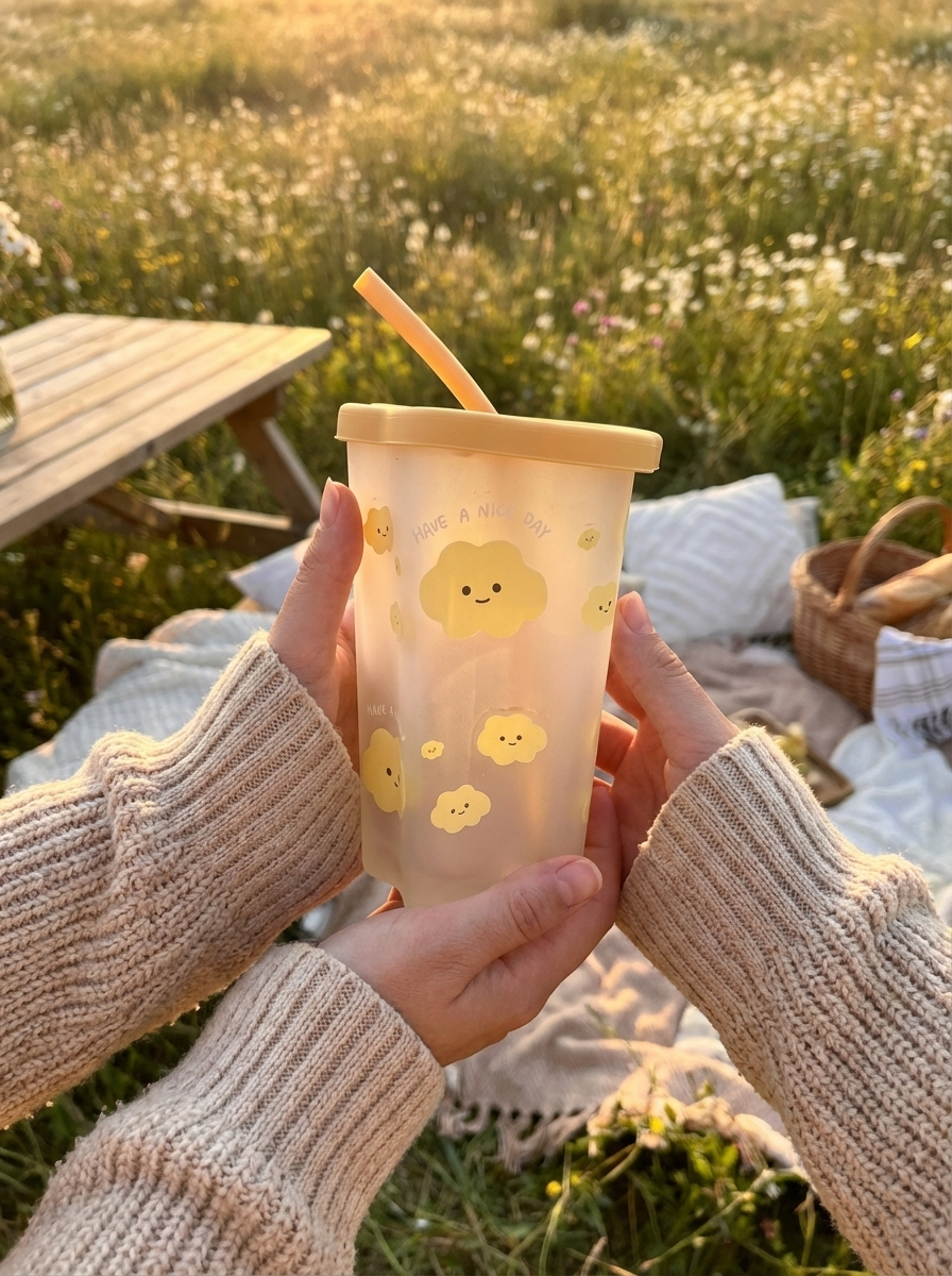 Brighten your day with this cute glass cup with silicone lid and straw, designed for both style and everyday convenience. Featuring an adorable cloud pattern and “Have a Nice Day” message, it’s perfect for adding a cheerful touch to your drinks.