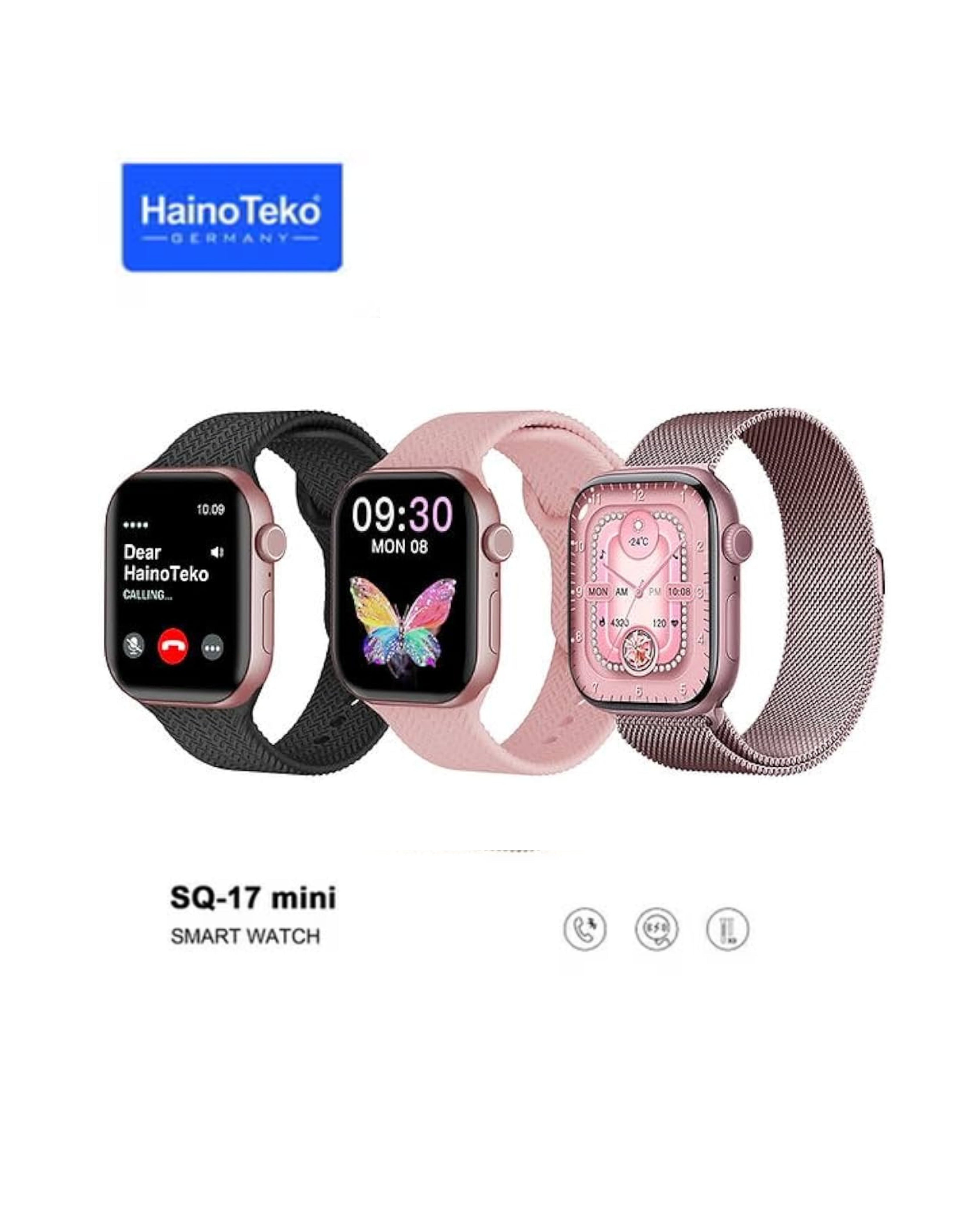 HainoTeko SQ-17 Mini Smart Watch AMOLED Display with 3 Interchangeable Straps Designed for Ladies Pink