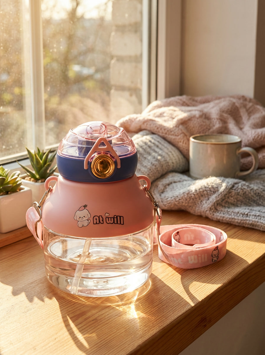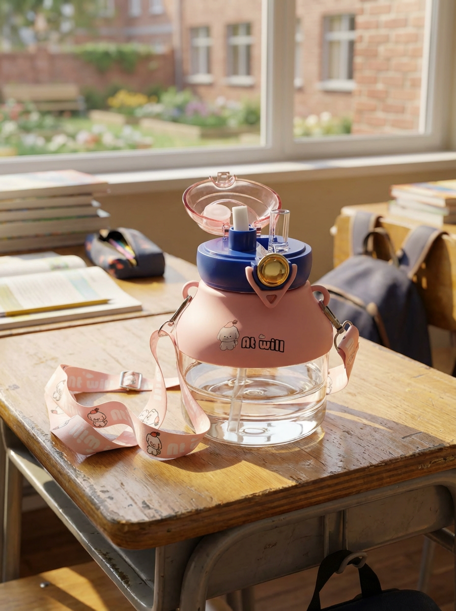Make hydration fun and easy for kids with this adorable cartoon-themed water bottle. Designed with a built-in straw and a secure flip-top lid, it allows smooth and spill-free drinking anytime, anywhere. The lightweight design and adjustable shoulder strap make it perfect for school, travel, and outdoor activities.