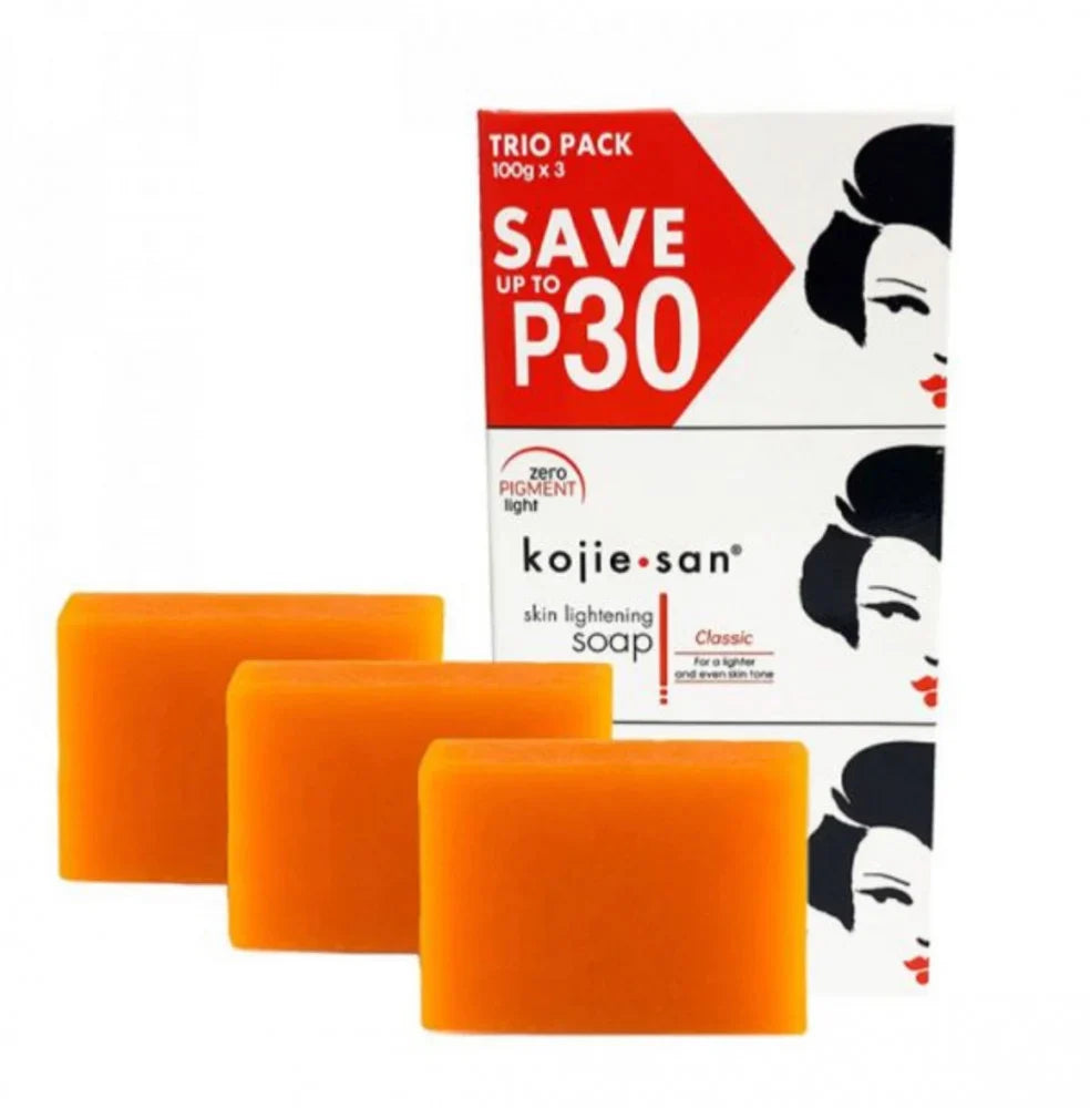 Kojie San Skin Brightening Soap harnesses authentic kojic acid to visibly diminish dark spots, freckles, and uneven skin tone across the face, neck, underarms, and body. Formulated with glycerin, tea tree oil, and coconut oil, this gentle cleanser effectively exfoliates while maintaining skin's natural moisture balance—suitable for all skin types and genders. The Zero Pigment Light Technology targets hyperpigmentation and dullness, revealing clearer, more luminous skin with consistent use. A dermatologist-informed solution for those seeking professional-grade brightening results in a convenient 100g bar.