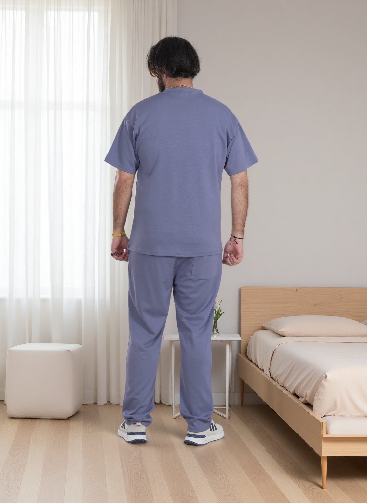 Experience refined comfort with this premium oversized men's ensemble, engineered for the discerning individual seeking quality and versatility. Constructed from a luxurious rayon and spandex blend, the set delivers exceptional softness with natural breathability ideal for lounging, travel, and everyday wear. The generously cut oversized top pairs with full-length trousers featuring an elastic waistband and strategically placed pockets—two side pockets on the trousers plus three functional pockets total for practicality. The mid-weight fabric provides optimal drape and movement without compromising durability. Choose from four refined colorways: taupe, dark gray, sage green, and light gray. Machine washable for effortless maintenance. Available in sizes L through 4XL.