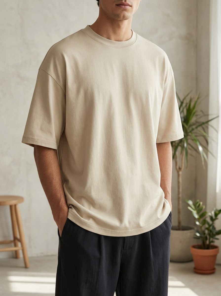 Men’s Oversized Cotton T-Shirt – Casual Loose Fit Crew Neck Basic Tee for Everyday Wear