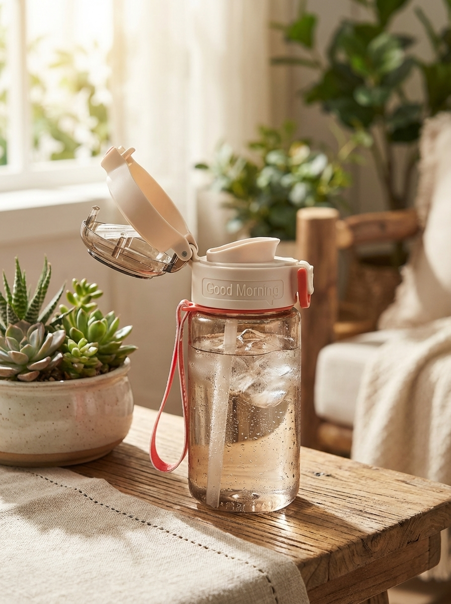Start your day right with this cute and functional portable water bottle, designed to keep you hydrated in style. Featuring a soft color palette and motivational “Good Morning” detail, this bottle adds a refreshing touch to your daily routine.