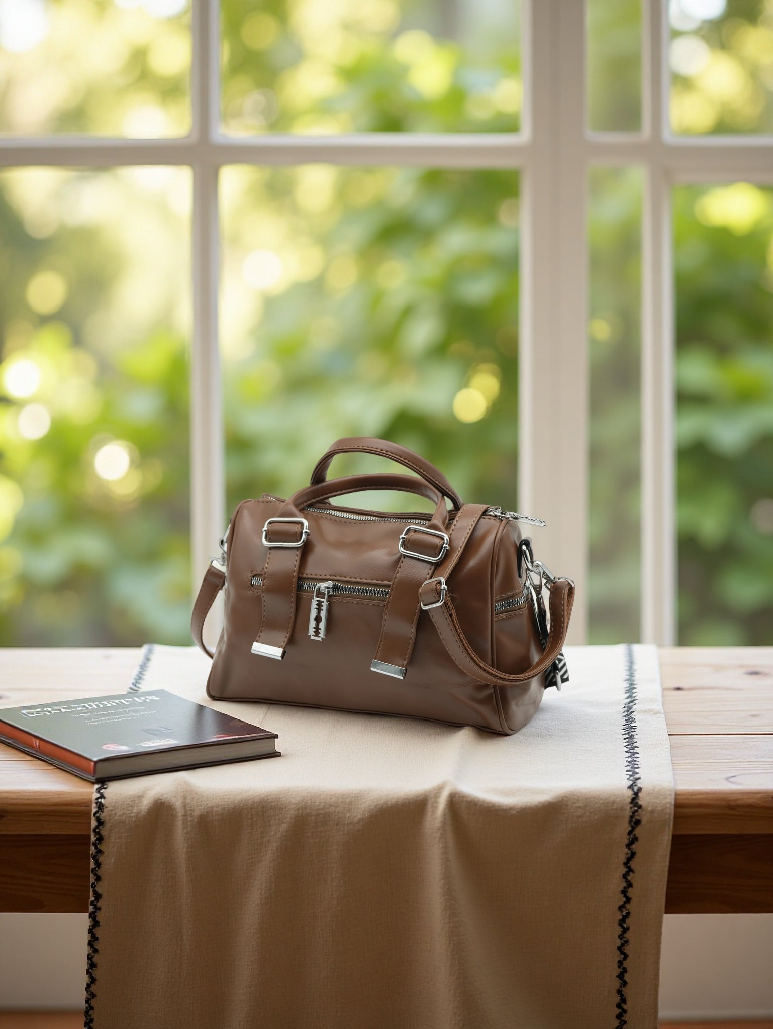 Crafted from durable, easy-to-clean faux leather, this satchel offers a spacious main compartment with secure zipper closure, making it ideal for daily use, office wear, or travel. The sturdy top handles and detachable crossbody strap provide versatile carrying options for your comfort.